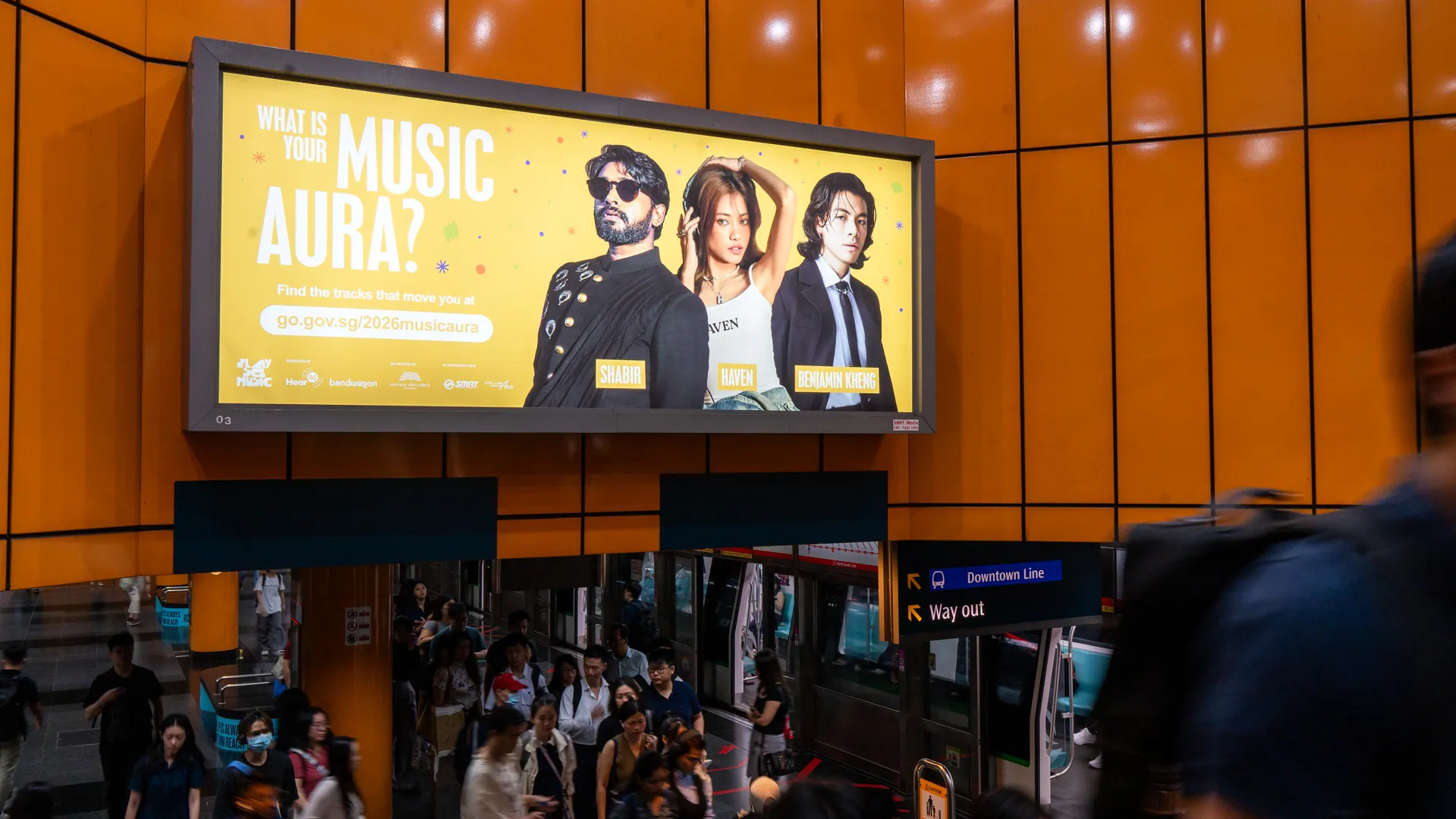 From today, commuters can spot bold bulkheads and digital screens popping up at key stations including Bugis, Orchard, City Hall, Raffles Place, Newton, and Aljunied, with additional installations at Sembawang and Marsiling going live shortly after - inviting the public to scan QR codes and uncover their personal "music aura". The campaign transforms high-traffic transit spaces into interactive touchpoints that spotlight Singapore’s vibrant local music scene.